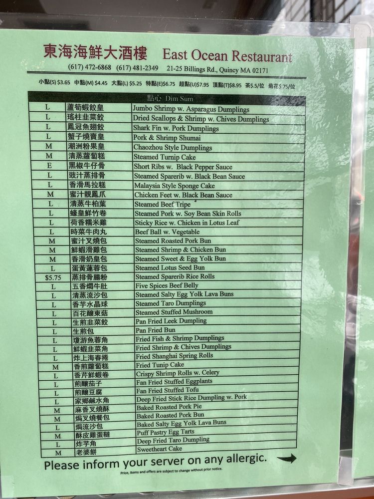 East Ocean Restaurant in Quincy, MA offers a delightful seafood dining experience with a focus on dim sum. The restaurant provides a casual setting with attentive service and a diverse menu. Customers praise the fresh and tasty seafood dishes, especially highlighting the clams in black bean sauce and shrimp dumplings. The restaurant is known for its authentic dim sum selection, made to order and served hot. While the ambiance may not be upscale, the focus is on the quality of the food. The staff, predominantly Chinese-speaking, are friendly and efficient, ensuring a pleasant dining experience. With limited street parking, it is recommended to arrive early to avoid crowds. Overall, East Ocean Restaurant is a go-to spot for delicious dim sum and Chinese-style seafood, earning praise for its consistent quality and variety.